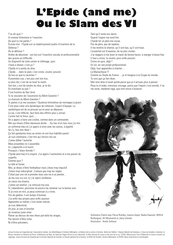 [Leitura Furiosa 2014] “L’épide (and me) ou le Slam des VI” 30 mai 201410 mars 2016 Cardan Ecoutez la lecture ! : http://www.assocardan.org/wp-content/uploads/2014/05/LEpide-and-me-Guillaume-Chérel.mp3 Cliquez sur la page pour l’agrandir.