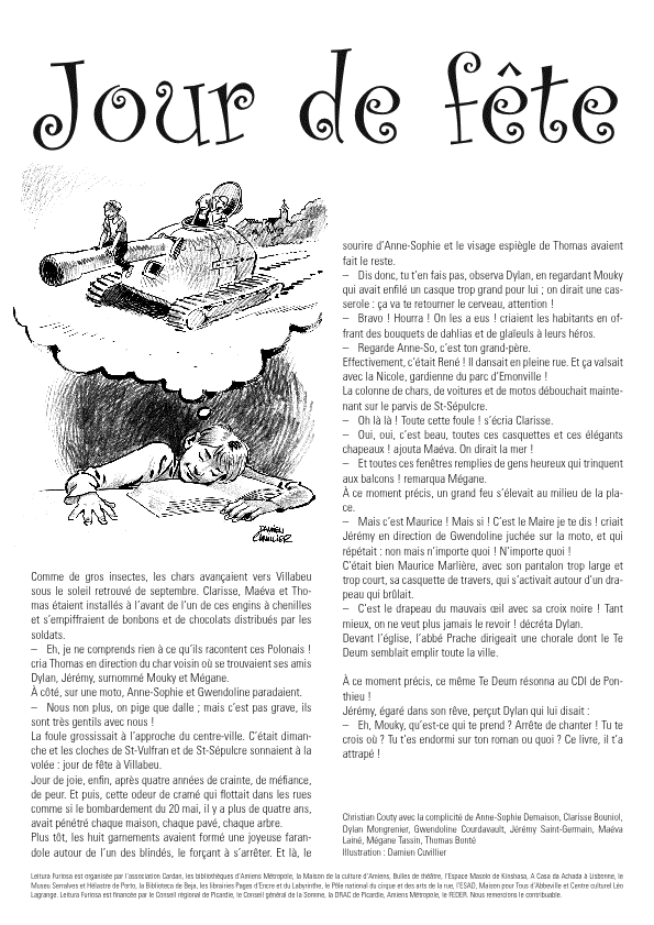 [Leitura Furiosa 2014] “Jour de fête” 30 mai 201410 mars 2016 Cardan Ecoutez la lecture ! : http://www.assocardan.org/wp-content/uploads/2014/05/Jour-de-fête-Christian-Couty.mp3 Cliquez sur la page pour l’agrandir.
