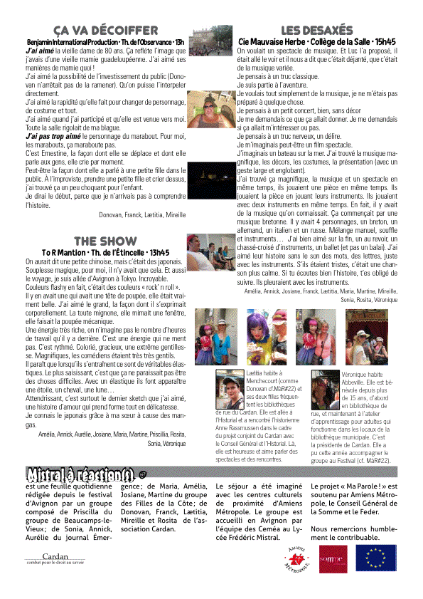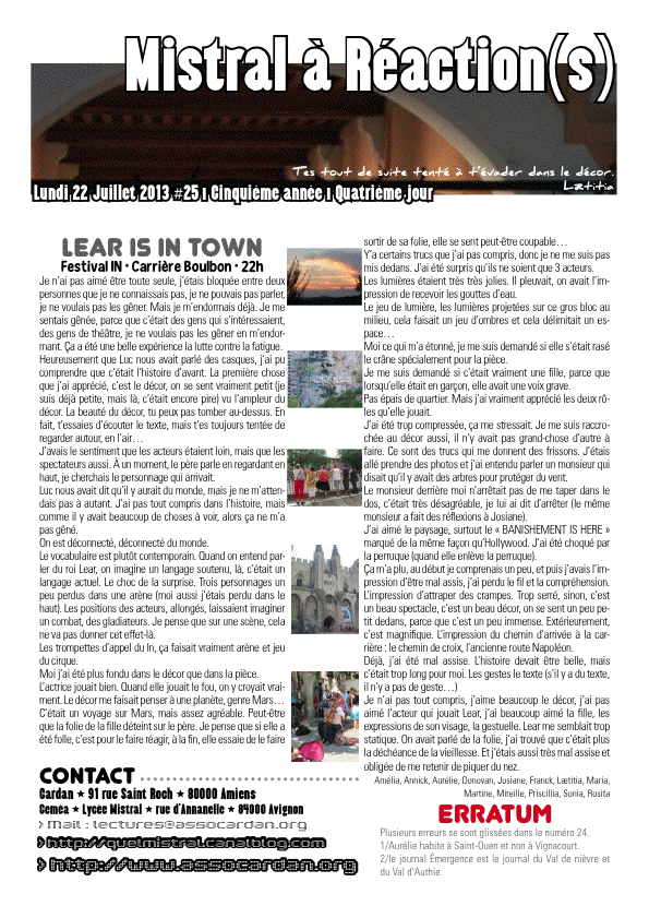 Mistral à réaction(s), PUBLICATIONS Avignon 2013, Festival d'Avignon, Mistral à réaction(s) permalien