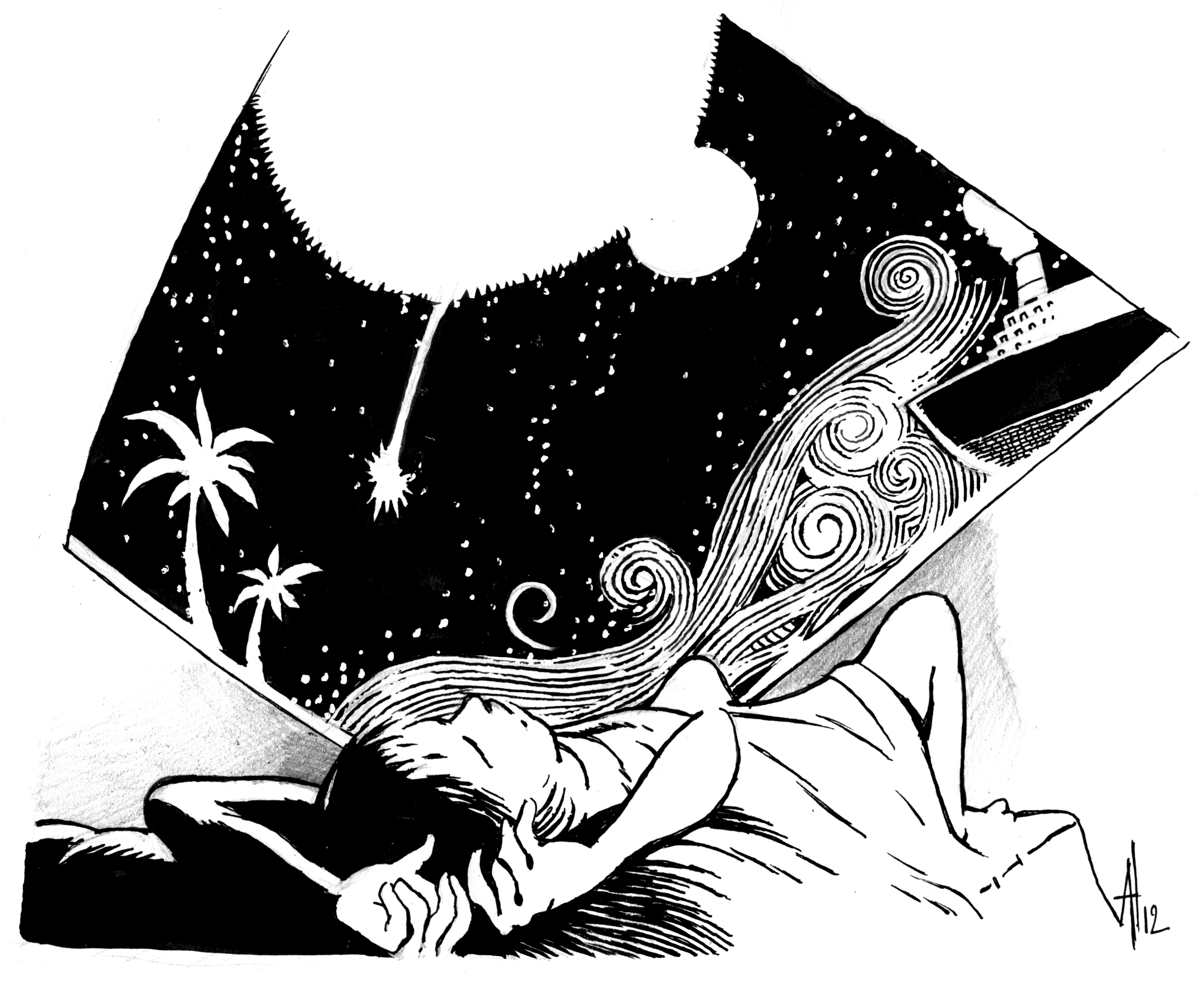Vous n’êtes pas perdu ? Suivez le couloir décoré d’affiches de Katmandou, de paquebots de croisière, de roulottes à chevaux, et approchez de la grande affiche de Tahiti… Vous voilà transportés sur une île paradisiaque, avec, plantée sur le sable chaud au milieu des palmiers, une petite paillotte. Il n’y a pas d’endroit plus calme, où la mélodie du vent est plus douce et le spectacle des bateaux à l’horizon plus magique.