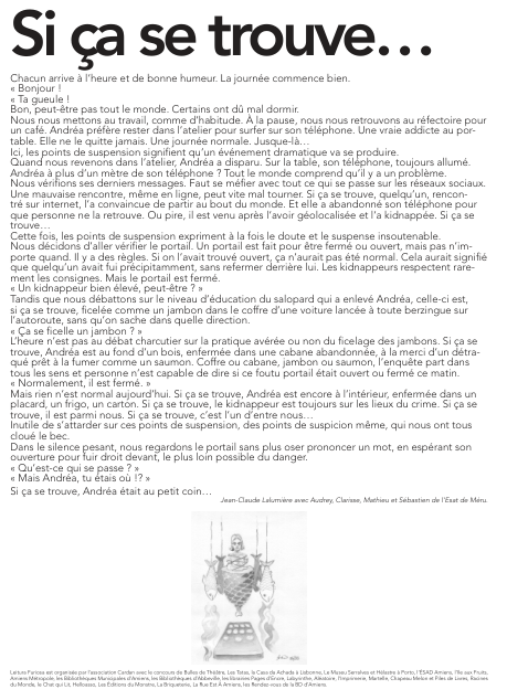Un texte écrit par Jean-Claude Lalumière avec Audrey, Clarisse, Mathieu et Sébastien de l’Esat de Méru.